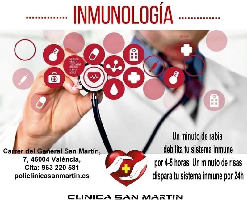 inmunologíaclinicasanmartinvlcINMUNIDAD INNATALa inmunidad innata, o inespecífica, es un sistema de defensas con el cual usted nació y que lo protege contra todos los antígenos. La inmunidad innata consiste en barreras que impiden que los materiales dañinos ingresen en el cuerpo. Estas barreras forman la primera línea de defensa en la respuesta inmunitaria. Ejemplos de inmunidad innata abarcan:El reflejo de la tosLas enzimas en las lágrimas y los aceites de la pielEl moco, que atrapa bacterias y partículas pequeñasLa pielEl ácido gástrico.Carrer del General San Martín, 7, 46004 València,Cita: 963 220 581web: policlinicasanmartin.es#familia #inmunoterapia #salud #cuidarse #clinicasanmartinvlc