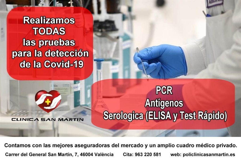 En la clínica San Martín ,contamos con todas las aseguradorasLa {company_name_branding} es una policlínica en el centro de Valencia, contamos con las mejores aseguradoras del mercado y un amplio cuadro médico privado.Realizamos todas las pruebas para la detección de la Covid-19.PCR Antígenos Serologica (ELISA y Test Rápido)Carrer del General San Martín, 7, 46004 València,Cita: 963 220 581web: policlinicasanmartin.esclinicasanmartinvlc #cuidarse #familia #test #salud #valencia #clinicavalenciaCarrer del General San Martín, 7, 46004 València,Cita: 963 220 581web: policlinicasanmartin.es